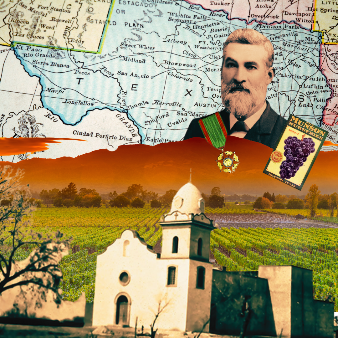 Around the late 1600’s vines were brought north into what would later become Texas territroy by Franciscan missionaries, establishing one of the first vineyards at Ysleta Mission near the banks of the Rio Grande. Texas would later play a vital role helping the world move past Phylloxera as viticulturalist and horticulturalist Thomas Volney Munson helped determine the best American vine rootstocks that could survive being planted in the limestone based soils of Europe. Exploring the biodiversity of native vines throughout Texas, Thomas would publish books and exhibit classifications of known species of indigenous grapes for Horticultural societies and expositions in America.